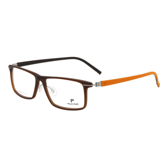 This pair of full rim rectangle glasses would be an ideal choice for you if you are looking for simple eyeglasses. It comes in with a large variety of colours. Twistable temples on the side allow users to switch between 2 colours base on their mood and outfit. Adjustable nose pads are included to protect users' noses from being squeezed with great support. It is super light weighted (16g). They are available in transparent, black, red wine, brown, lime green, and blue.